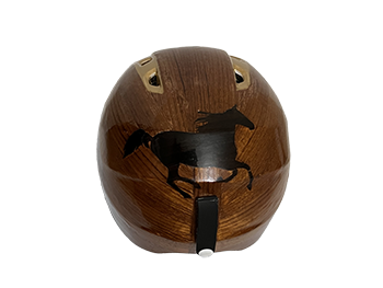 Helmet layered with just plain Teak tree that is smoothed out on the aligned Fussini symbol along the back- $3,800